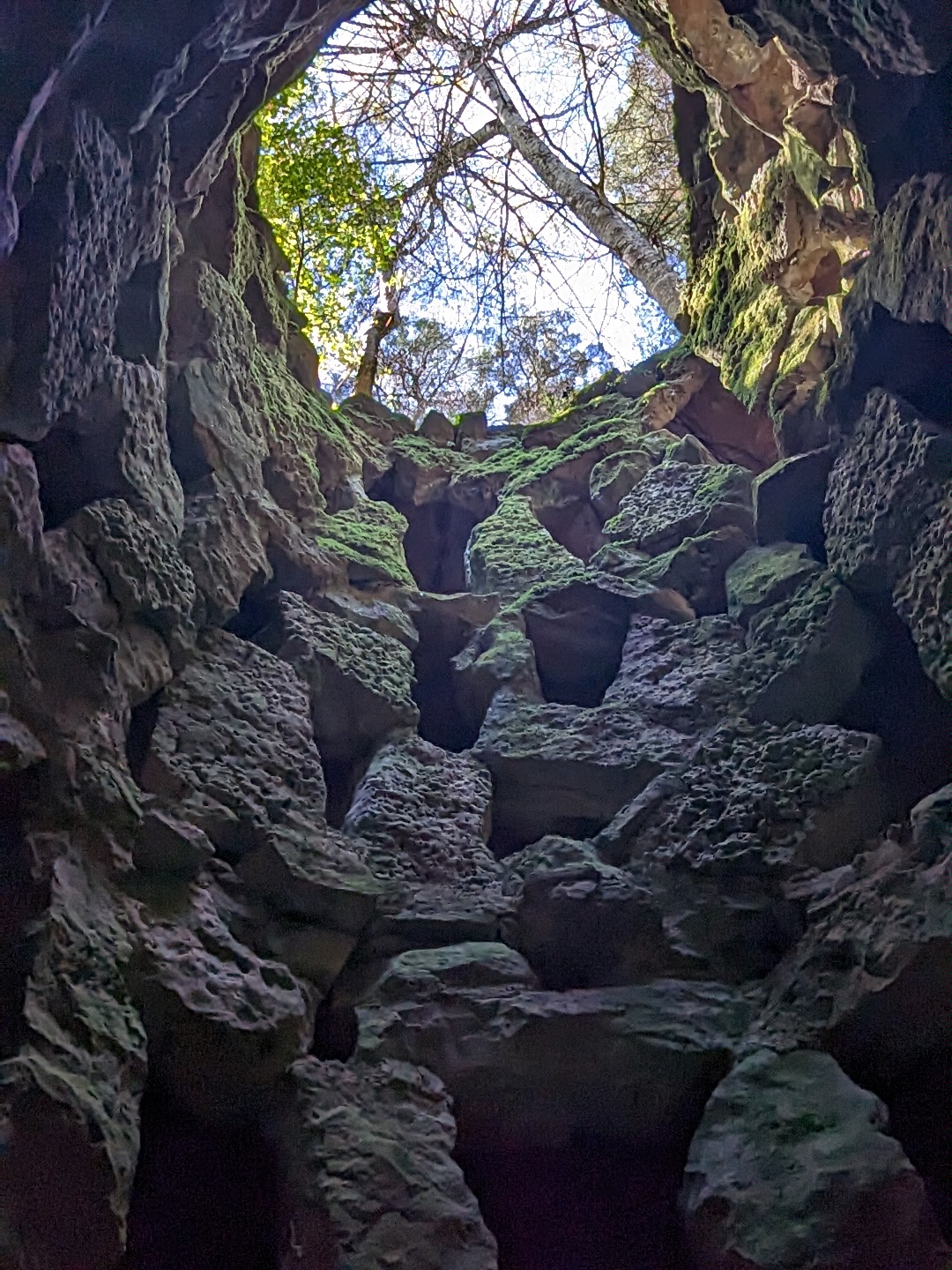 Fiquei imaginando se tais cerimônias (se existiram) eram realizadas a luz do dia ou da noite. Seriam em dia de Lua cheia ou sem lua? Seria a cerimônia realizada com o sol a pino a adentrar todo o poço? Também é possível que alguma cerimônia fosse realizada pelo caminho inverso. Como a visita é feita descendo o Poço e saindo por uma de suas cavernas, também poderia ser feita em sentido invertido. Assim, o neófito adentra a caverna em plena escuridão e silêncio para depois elevar-se a luz.